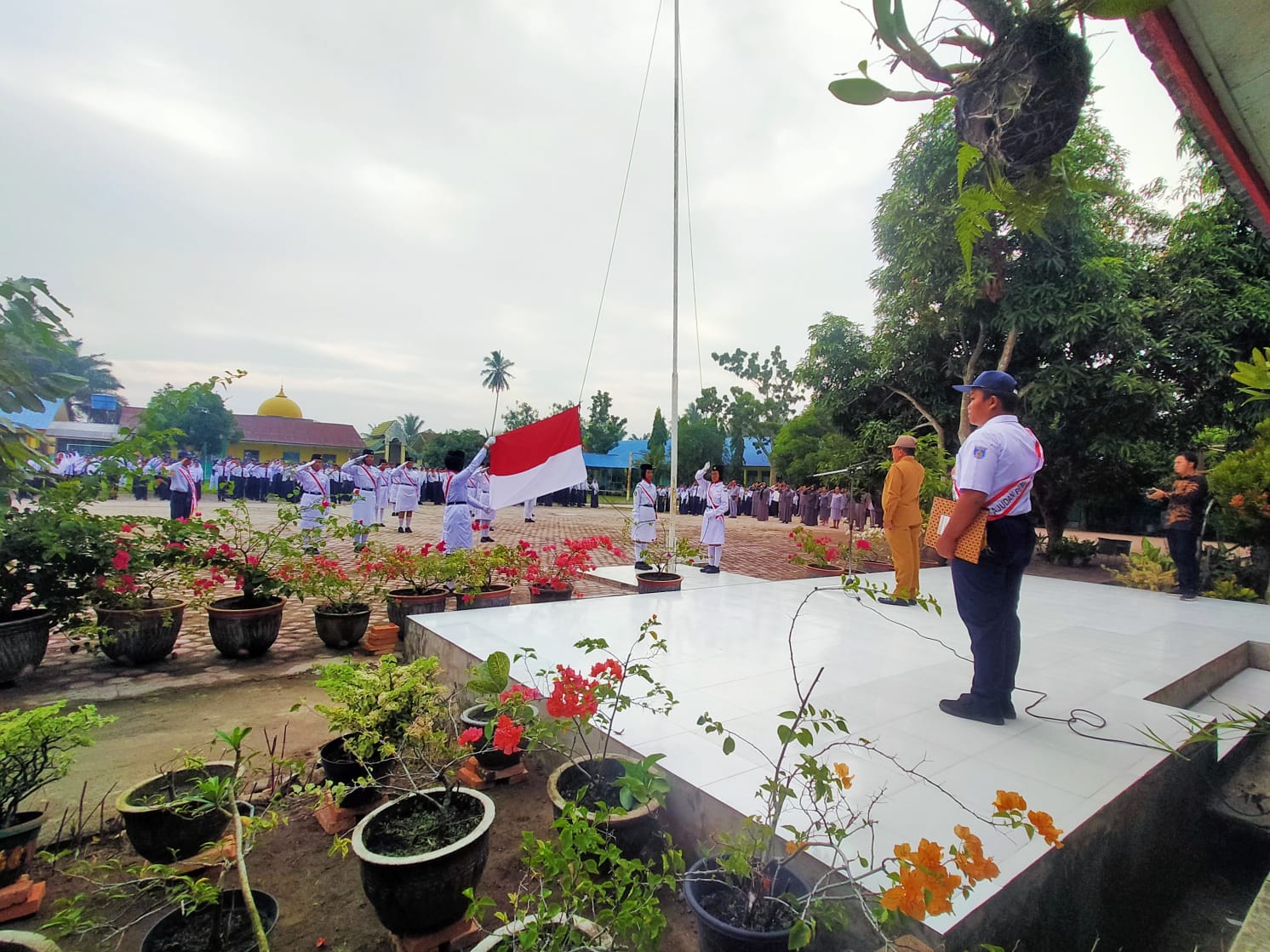 DIALOG BERITA, Kisaran – Pagi tadi, pukul 07.39, SMP Negeri 7 Kisaran menggelar upacara pembukaan Masa Pengenalan Lingkungan Sekolah (MPLS) yang dihadiri oleh Asisten 3 Pemkab Asahan, Drs.. Muhili Lubis, MSi. Acara dimulai dengan pengibaran Bendera Merah Putih yang dipimpin langsung oleh Asisten 3, menandakan dimulainya kegiatan MPLS tahun ini.
